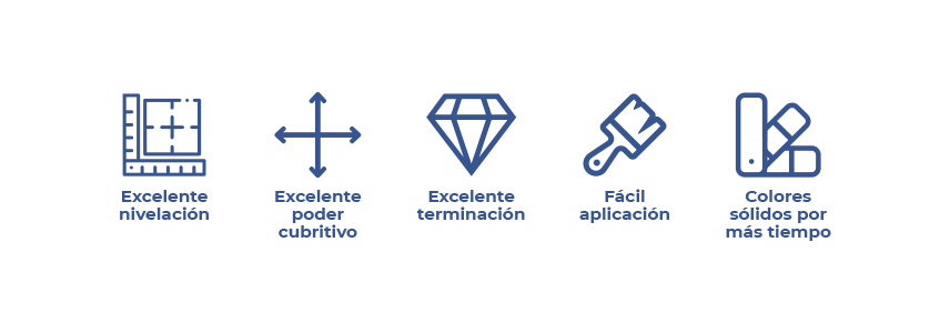 Color: Se ofrece una variada gama de colores listos para usar. Colores adicionales se obtienen mediante el agregado de entonadores hasta un máximo de 30 cm³ por litro, partiendo del color blanco.