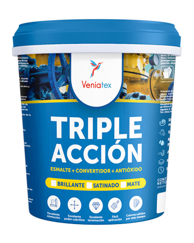 Aplicar VENIATEX TRIPLE ACCIÓN dejando una película uniforme y pareja que cubra todos los rincones y detalles de la superficie. -